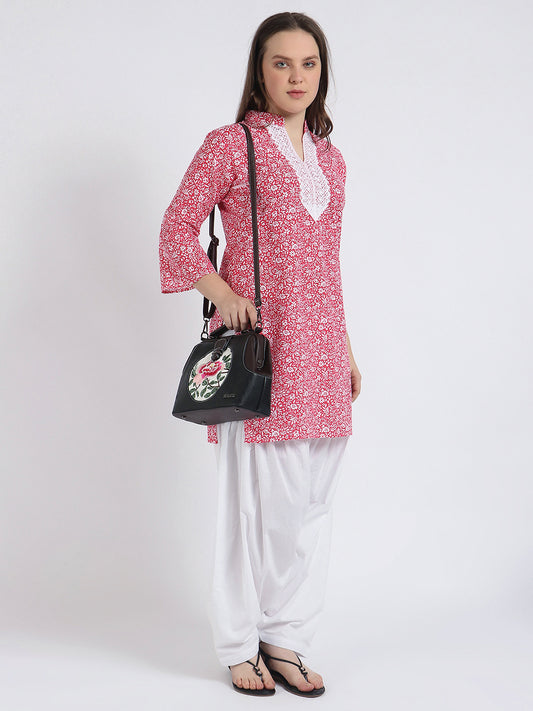 Trendzmy Women Printed Top Red Kurta and Salwar Set Pure Cotton