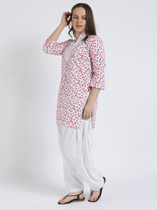 Trendzmy Women Printed Top Red & White Kurta and Salwar Set Pure Cotton