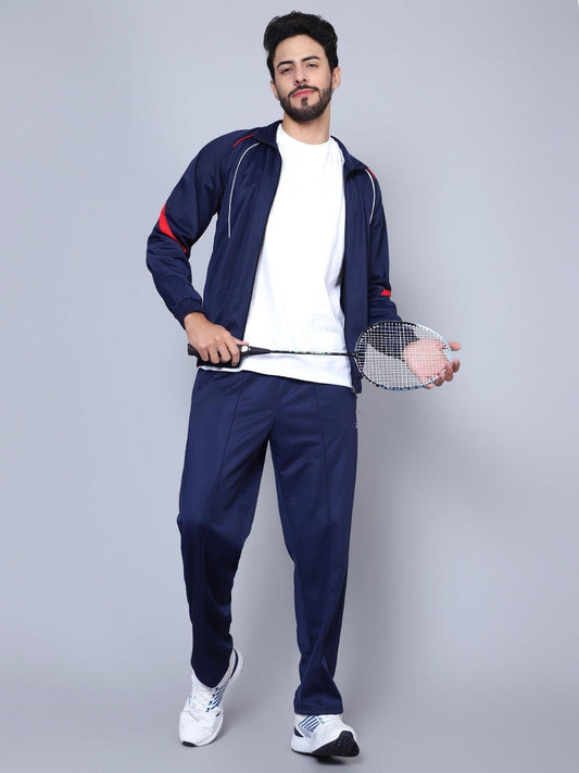 Shiv Naresh Men Color blocked 445A Navy Blue with Red Pipe Racer-suit 2.0 Tracksuit