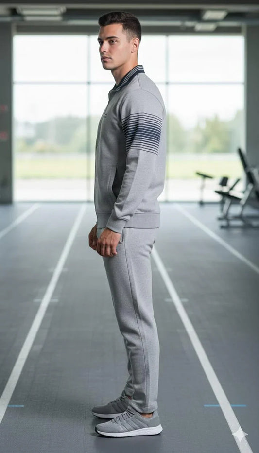 Shivnaresh Men's Tracksuit Interlock Lycra| Black Light Grey