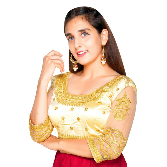 SaleSave 75%Trendzmy Designer Satin Work Cream Gold Women Blouse