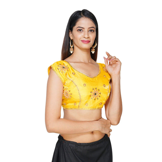 Trendzmy Designer Silk Work Mirror Yellow Women Blouse