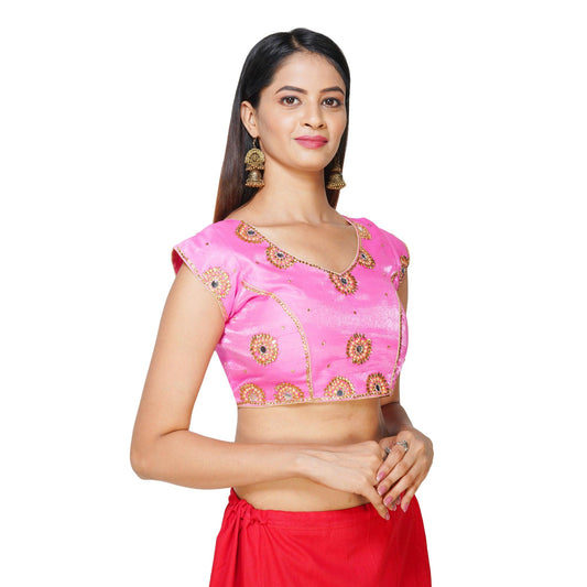 SaleSave 81%Trendzmy Designer Silk Work Mirror Pink Women Blouse
