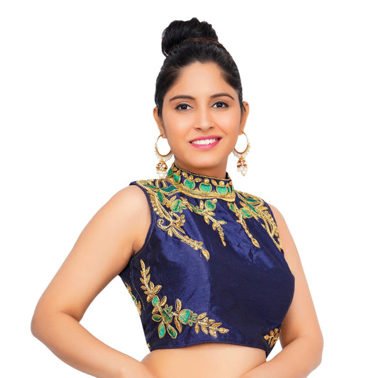 SaleSave 66%Trendzmy Band Collar Navy Blue Women Blouse