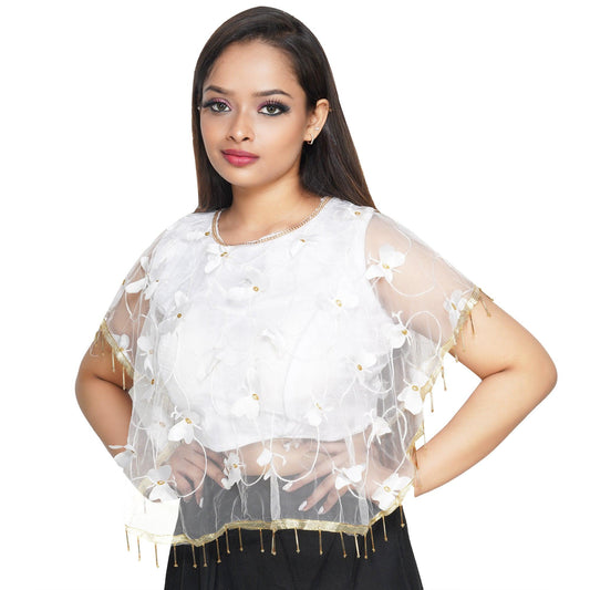 Trendzmy Boat Neck 3D Butterfly Work White Women Blouse