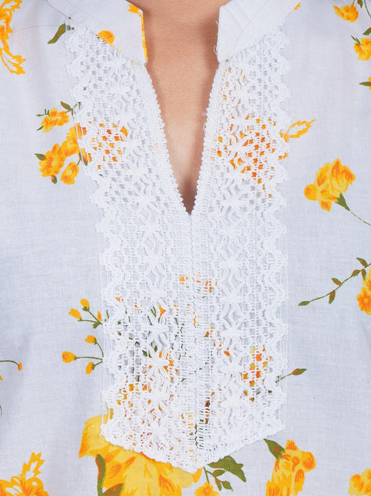 Regular price Rs. 649.00Regular priceUnit price perRs. 1,699.00Sale price Rs. 649.00Trendzmy Women White Floral Printed Cotton Coord Set with 3/4 Sleeves