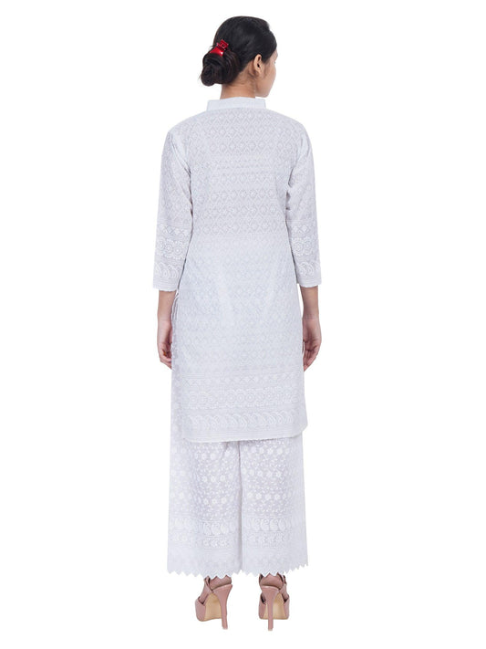 Trendzmy Women White Kurta and Palazzo Set Pure Cotton