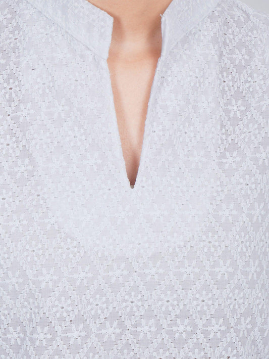 Trendzmy Women White Chicken Embroidered Straight Kurta