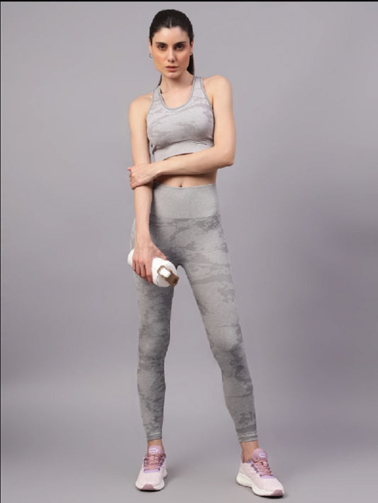 Shiv Naresh Women Grey Core Fit Seamless Sports Bra & High-Rise Leggings Gym Workout Set