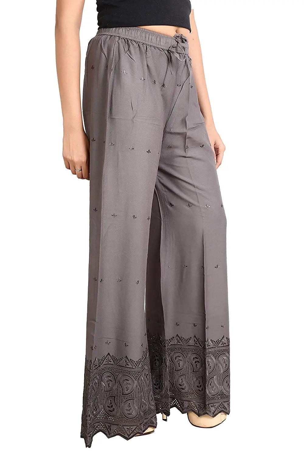 Singhania Woman's Grey Reyon Chiken Embroidery Plazzo