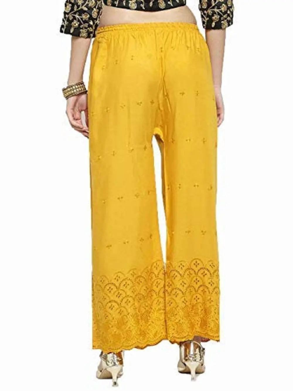 Singhania Woman's Mastard Reyon Chiken Embroidery Plazzo