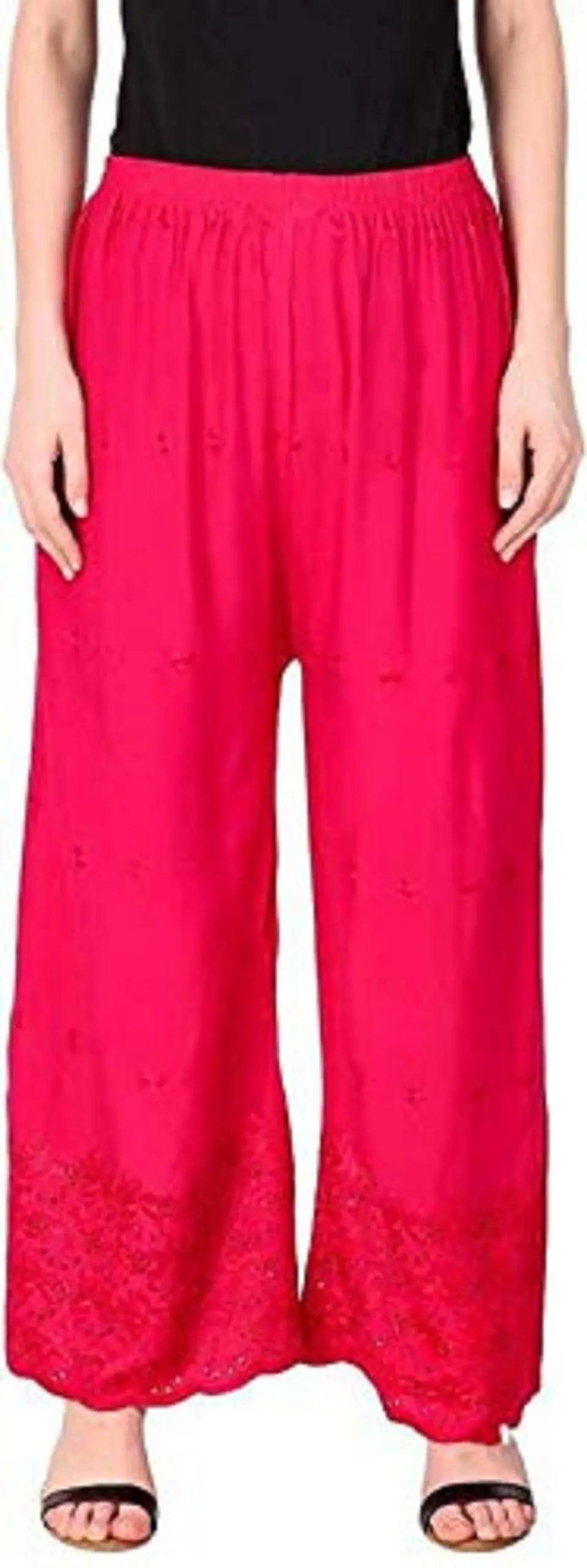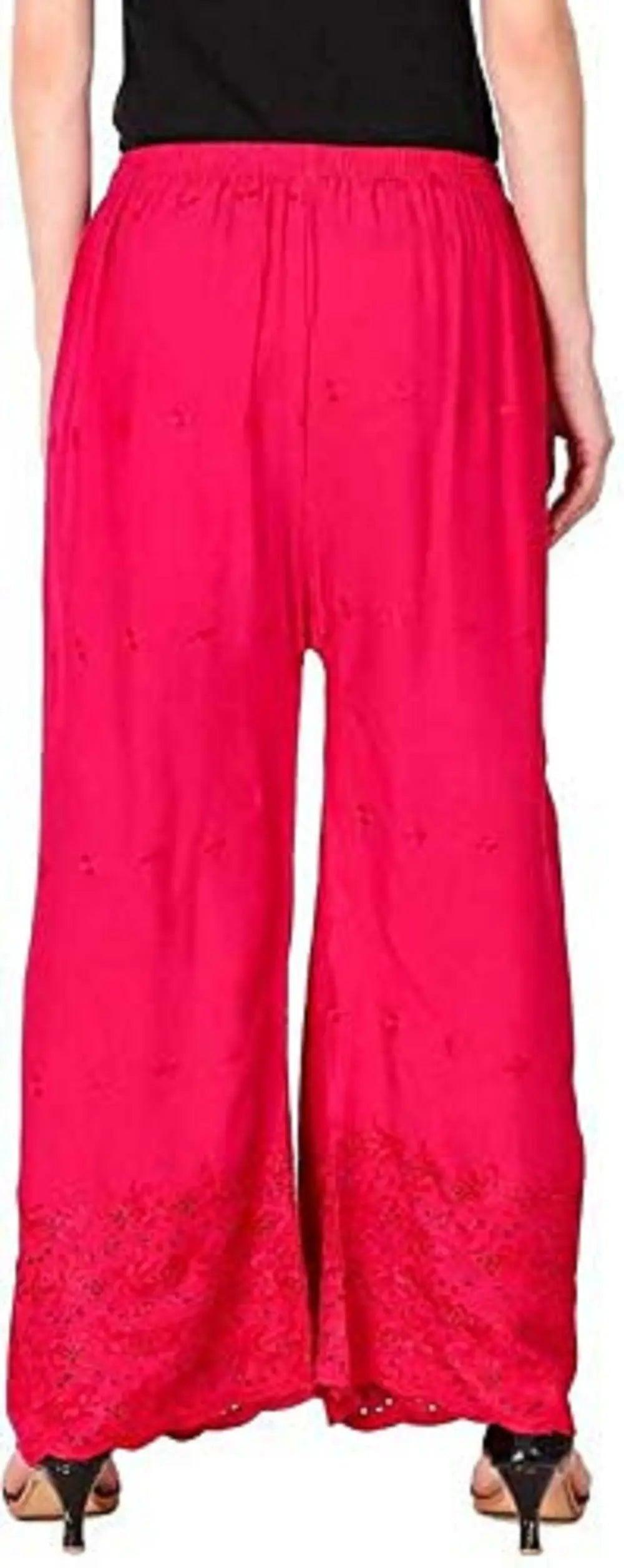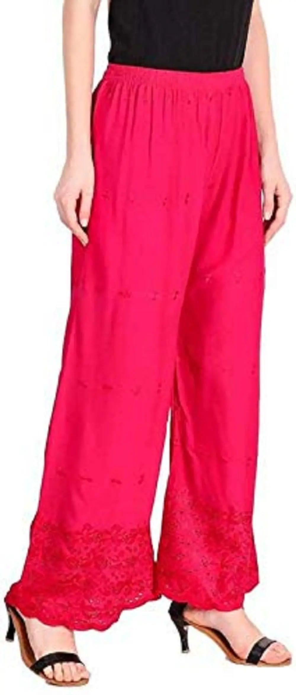 Singhania Woman's Rani Pink Reyon Chiken Embroidery Plazzo