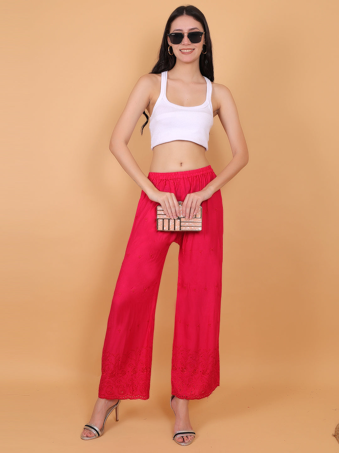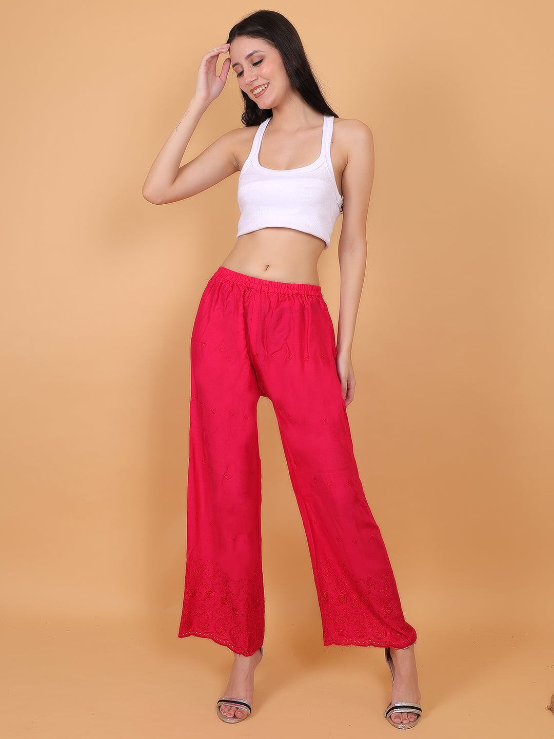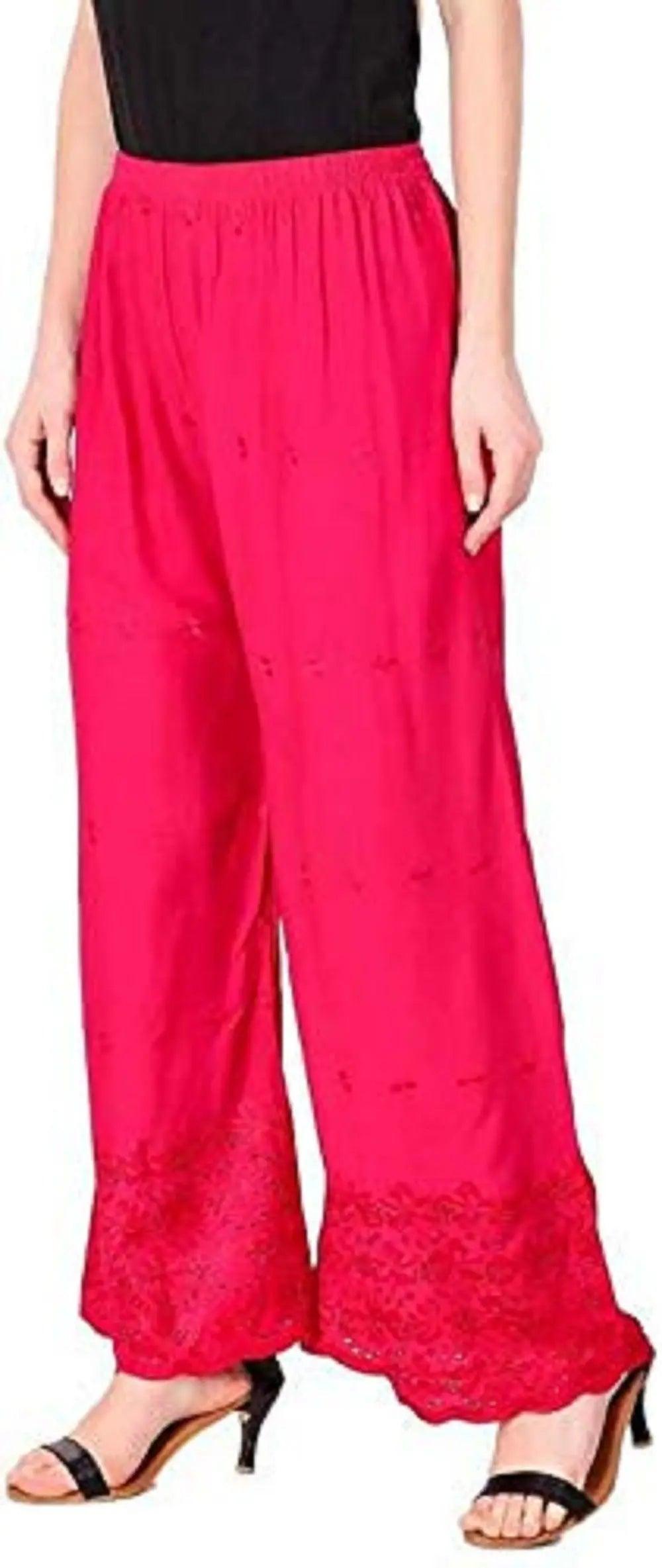 Singhania Woman's Rani Pink Reyon Chiken Embroidery Plazzo