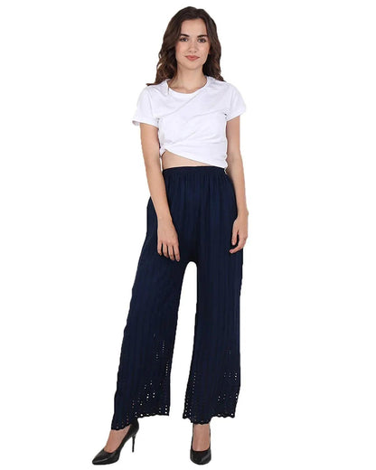 Singhania Women's Navy Chicken Rayon Palazzo Flaired Pants wrinkle free