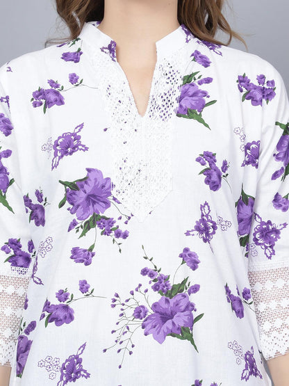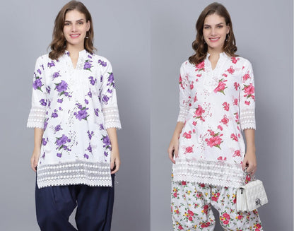 Trendzmy Pack of 2 Women Floral Print Cotton Blend Straight Kurta  (Purple, Red)