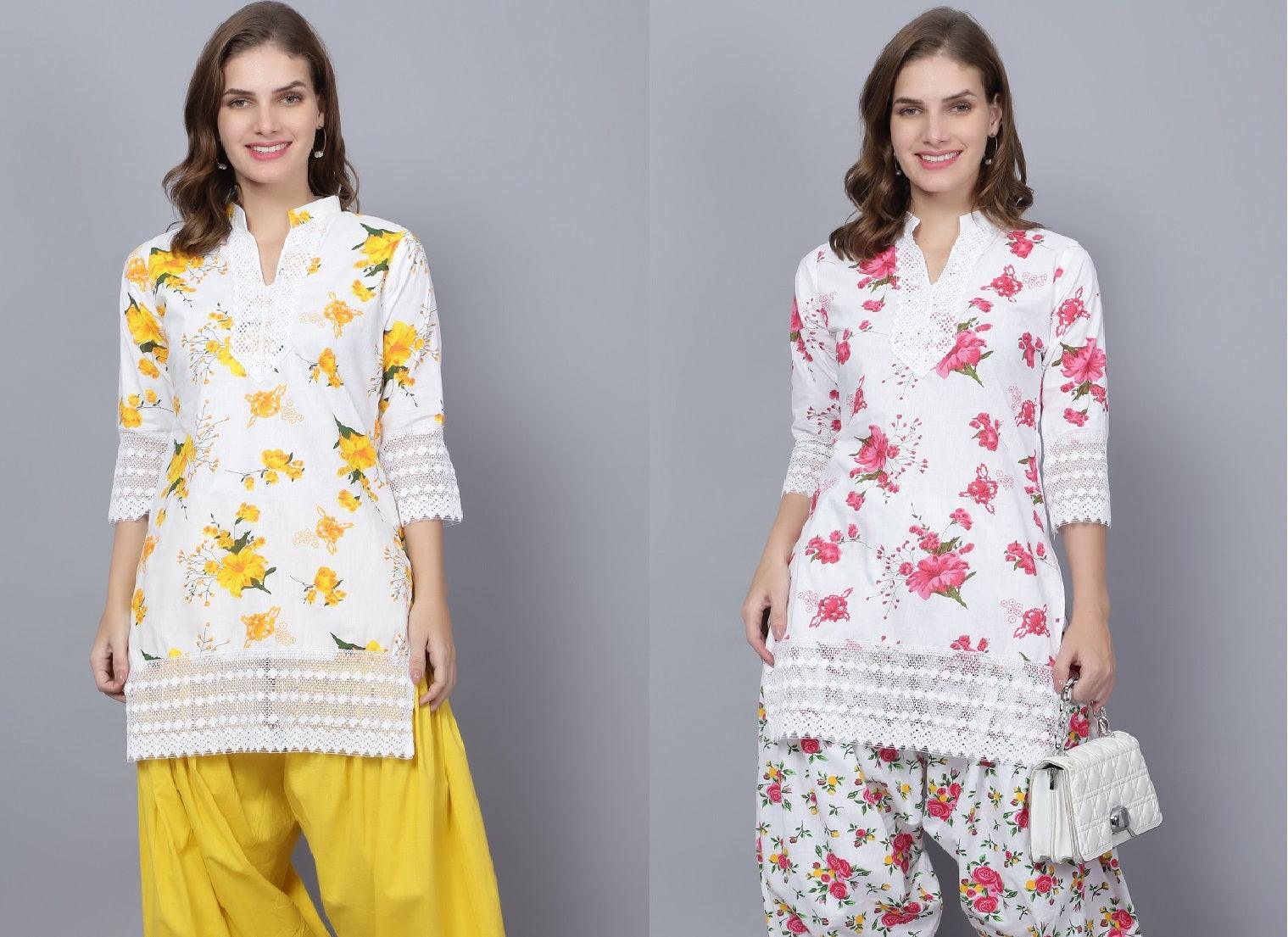 Trendzmy Pack of 2 Women Floral Print Cotton Blend Straight Kurta (Yellow, Red)