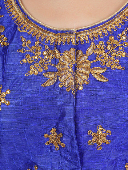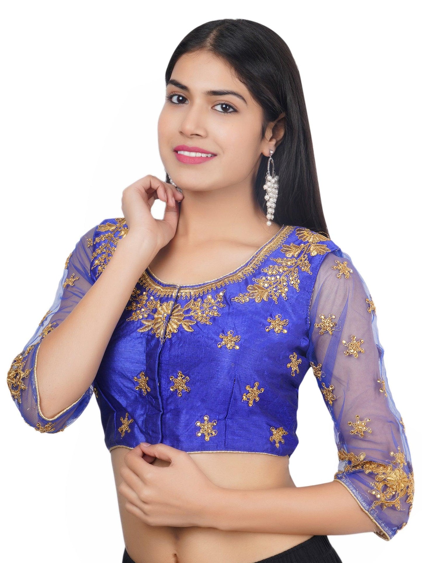 Trendzmy Round Neck Heavy Back Machine Embroidery Royal Blue Women Blouse