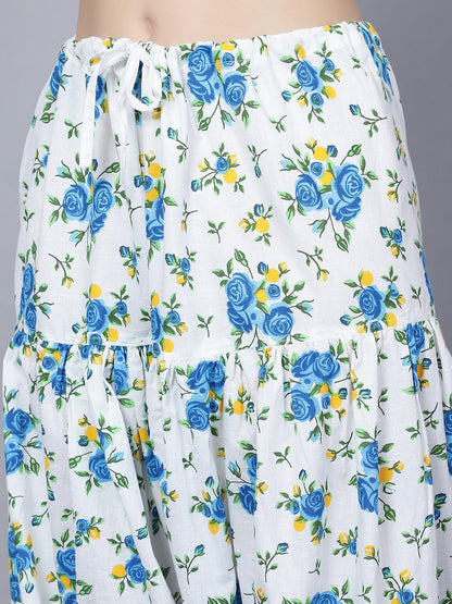 Trendzmy Women Apple Cut Blue Floral Print Pure Cotton Straight Kurta Set