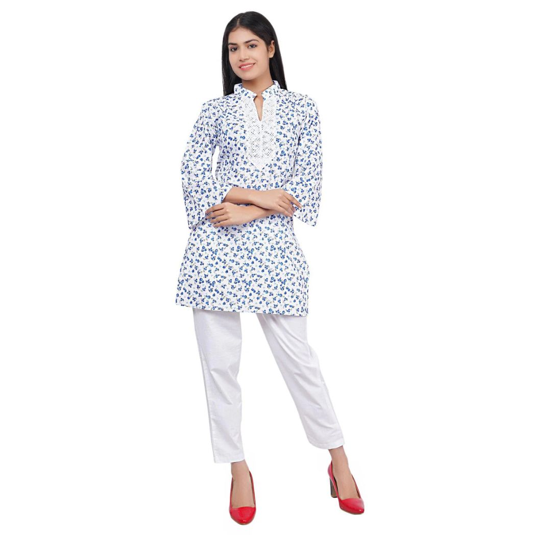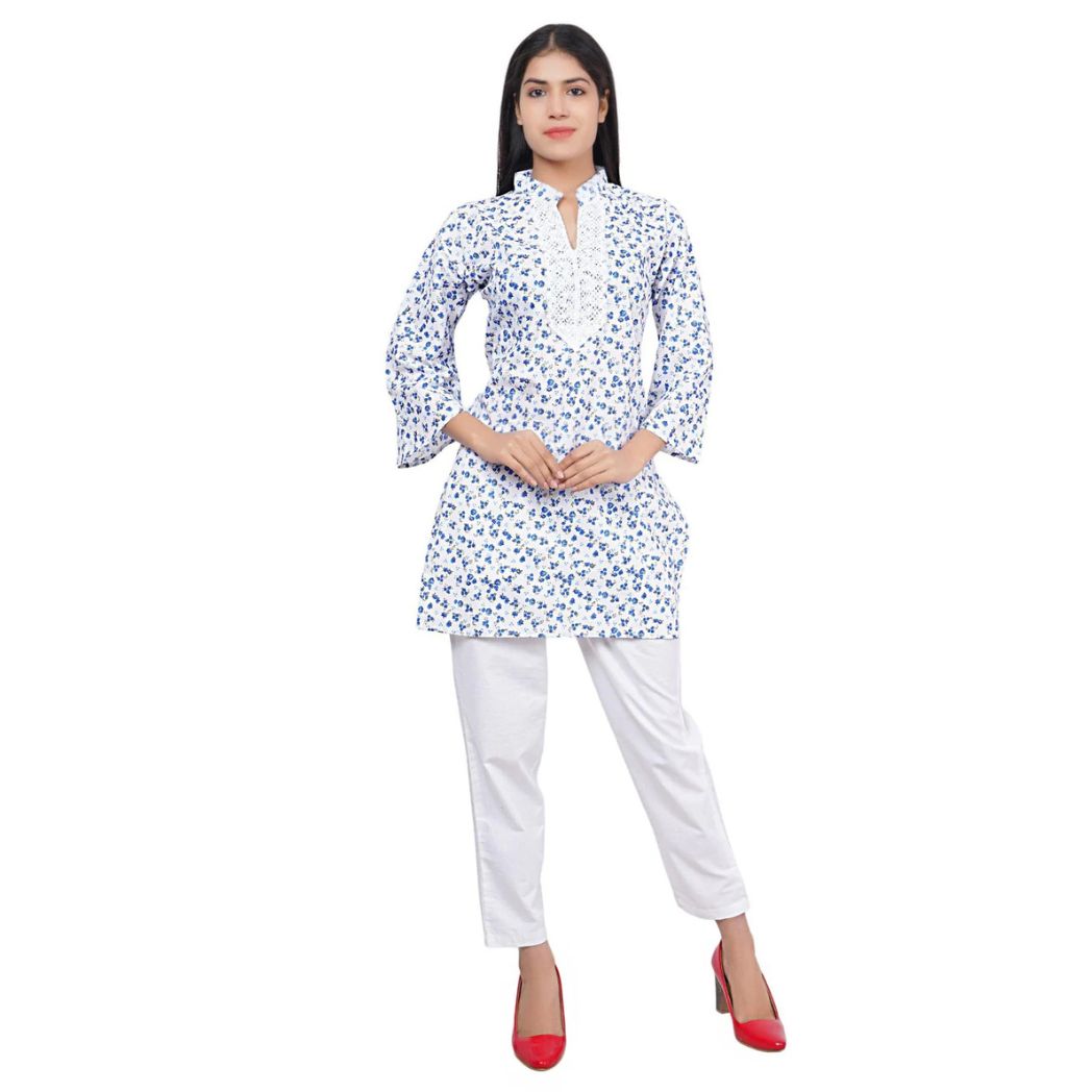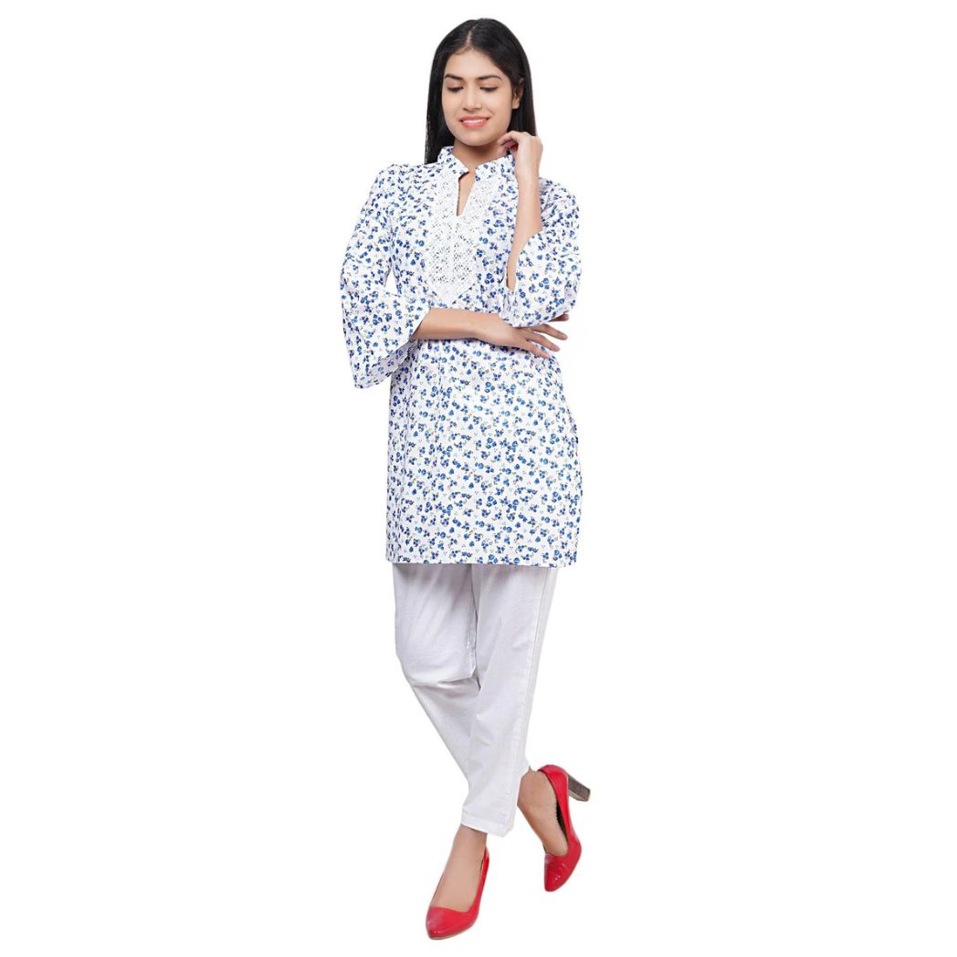 Trendzmy Women Blue Floral Printed Straight Kurta