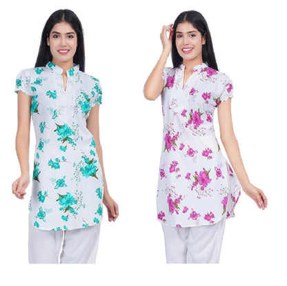 Trendzmy Women Green Pink Printed Straight Kurta Pack Of 2
