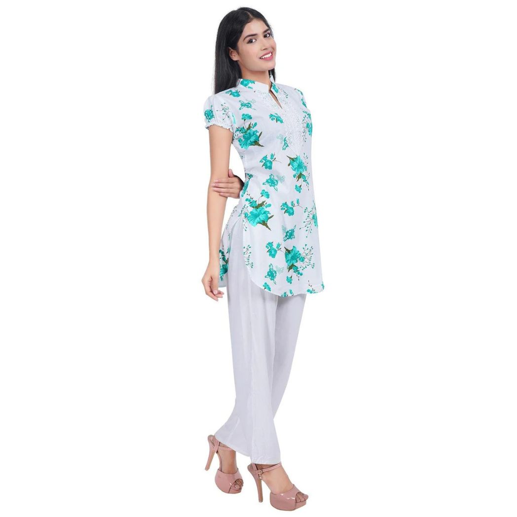 Trendzmy printed multicolor party & festive kurta. Fabric Style: Digital Print in classic colors. Styling Tip: This A-Line Kurta can be worn to work as a casual wear kurta, daily wear kurta, festive wear kurta, party wears kurta outfit with leggings, or accessorized as a festive outfit with flared palazzos or a skirt. Garment Fit: The garment is made with a relaxed fit. Fabric Type: The garment is made of Rayon, which is 100% natural fabric that is suitable for all weather. Wash Care: First Wash Dry Clean, thereafter Hand wash