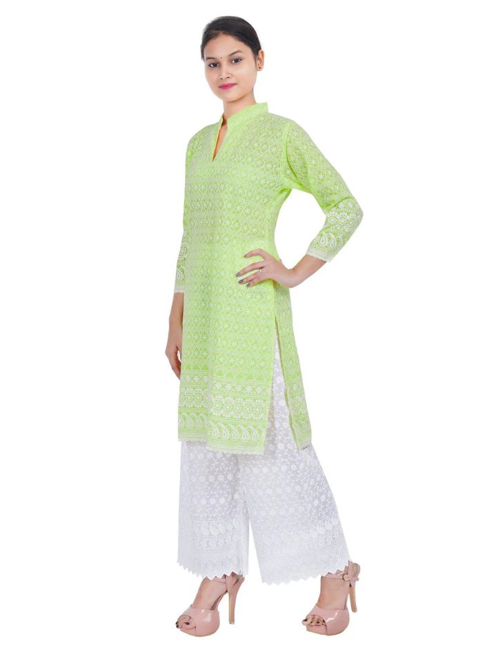 Trendzmy Women Pista Green Chicken Embroidered Straight Kurta