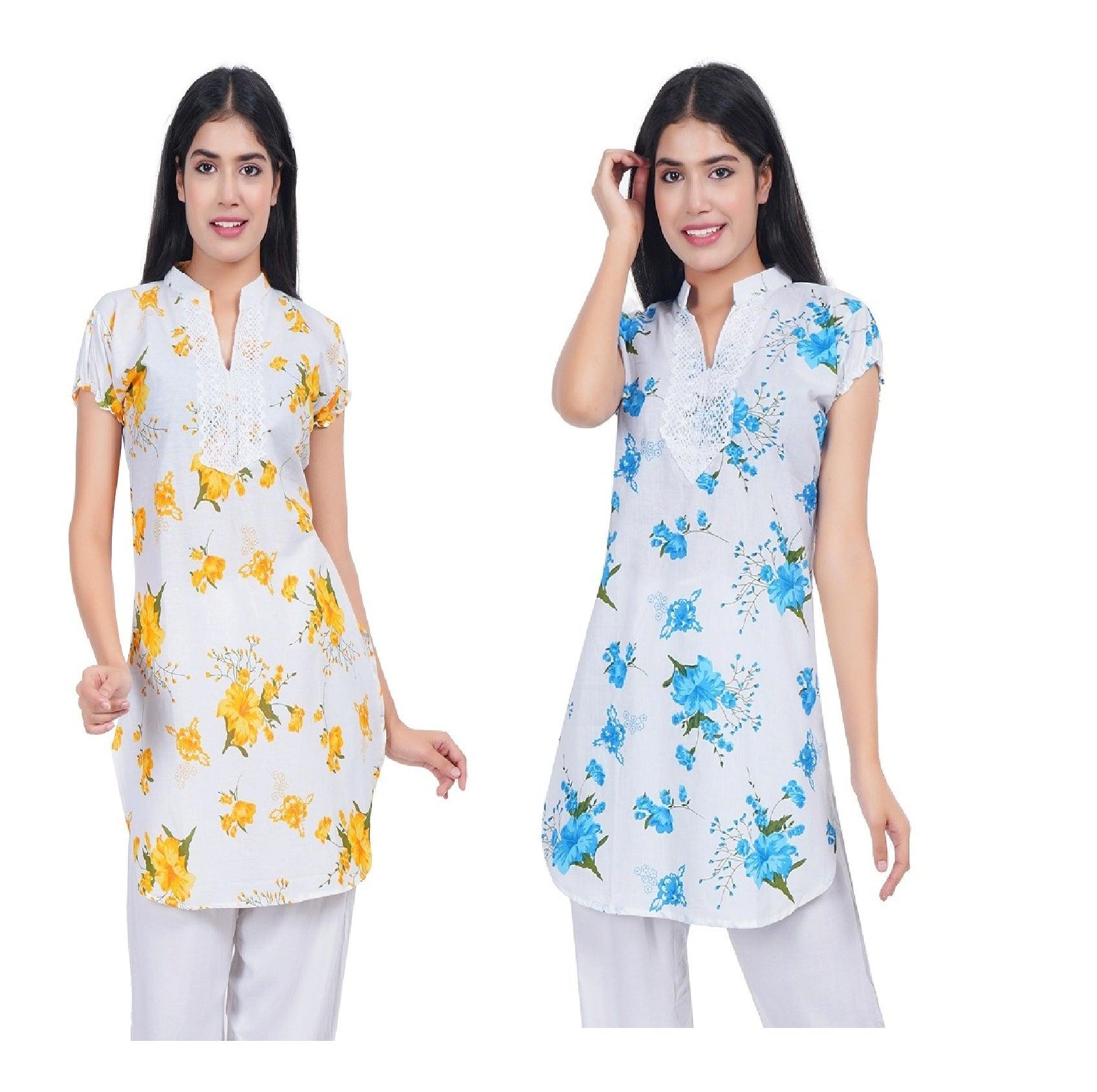 Trendzmy Women Yellow Blue Printed Straight Kurta Pack Of 2