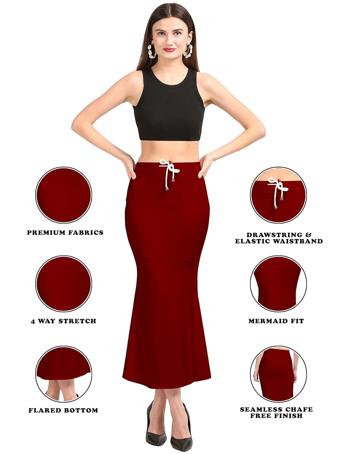Trendzmy Women's Maroon Lycra Full Elastic Saree Shapewear Petticoat Free Size